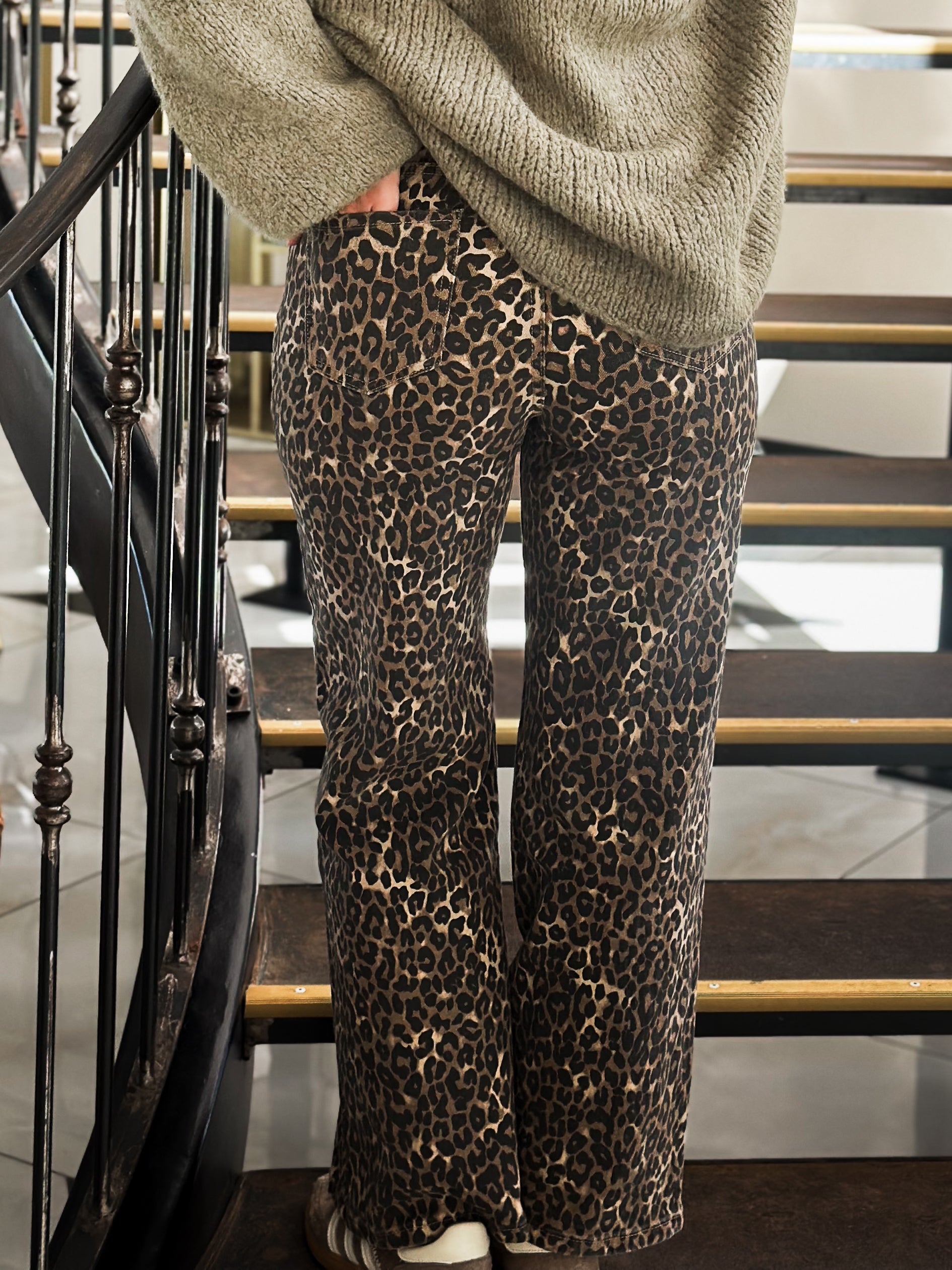 Le Jean Vittoria est la pièce audacieuse qui apporte du caractère à tes looks. Avec son imprimé dark léopard et sa coupe wide leg ultra tendance, il combine confort et style affirmé. Fluide et moderne, il s’associe aussi bien avec un gros gilet cosy qu’avec un top plus habillé pour un look de soirée.